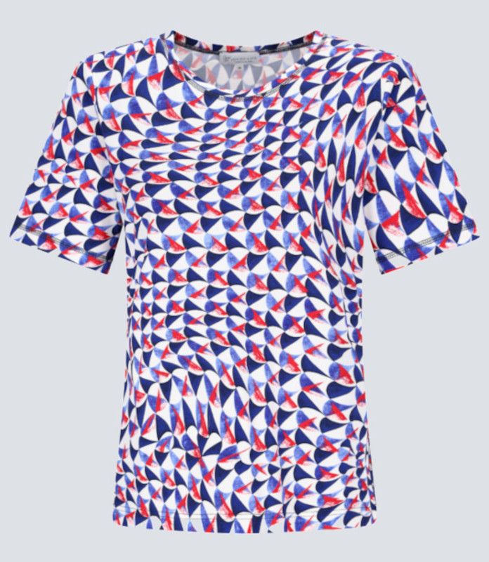 Dieses ansprechende Damen T-Shirt 10790 überzeugt in einem ausdrucksstarken Allover-Print in einer leuchtenden Farbkombination in der sich die Farben Weiss, Tinte und Rot gelungen abwechseln. Gefertigt wurde das Shirt aus einem elastischen Viskosemix und überzeugt mit seinem angenehmen Tragekomfort.