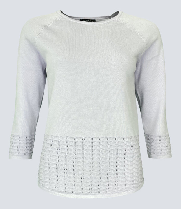 Der feminine Damen Pullover von Sunday hat eine gerade Passform und eine kürzere Länge. Der Dreiviertelarm unterstützt seine luftige Erscheinung und ist bei vielen Damen besonders beliebt.
