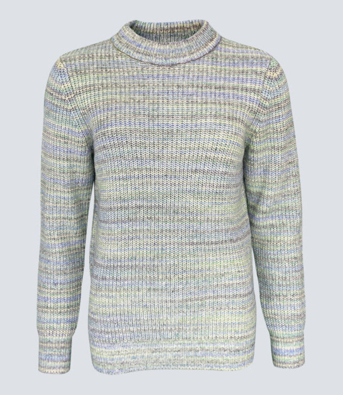 Dieser ansprechende Damen Stehbundpullover 48340 zeigt sich in einer harmonischen Melange aus Grün, Blau und Braun. Der wärmere Materialmix ist grob gestrickt und sollte deshalb besser liegend gelagert werden. Er ist zudem etwas dicker und besonders flauschig.