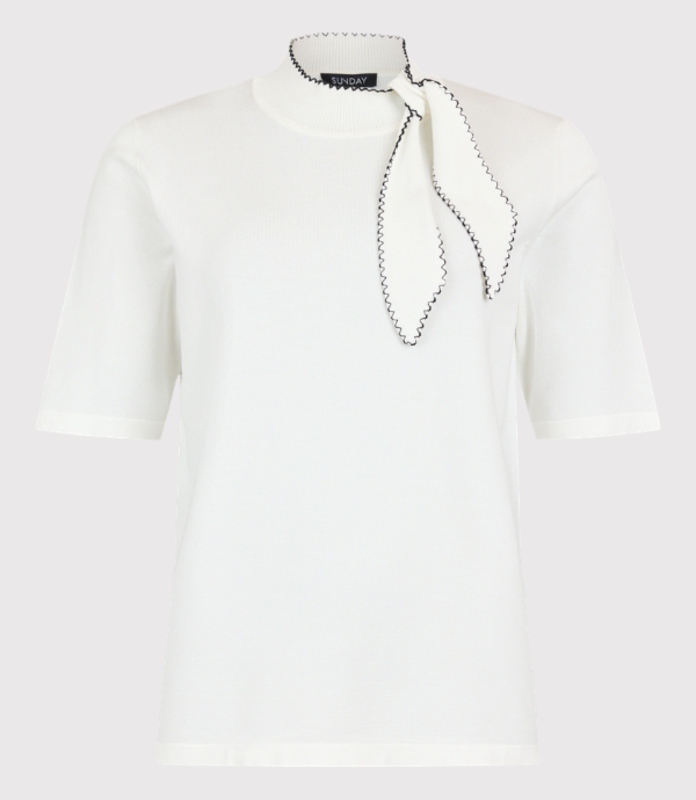 Der hübsche Damen Stehbundpullover von Sunday hat eine gerade Passform und eine kürzere Länge. Die ausgefallene Optik entsteht durch den dezent abgesetzten Stehbund und die auffällige Schleife am Kragen, die garantiert ins Auge sticht. Der Pullover eignet sich als Blickfang unter einer Jacke oder einem Blazer.