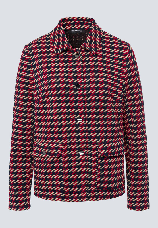 Diese ausgefallene Damen Jacke 109.304 punktet mit ihrer ansprechenden Musterung in den Farben Rot, Marine und Beige. Sie besteht aus einem angenehmen Materialmix, der einen hohen Tragekomfort bietet.