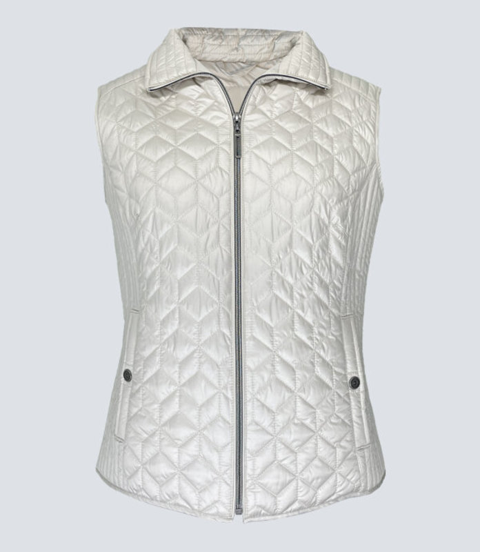Diese stilvolle Damensteppweste ist in einer sportiven Optik in der edlen Farbe Beige gehalten. Die Steppung hat eine mittelschwere Qualität und ist ideal zum Kombinieren. Die verschiedenen Steppungen erzeugen eine abwechslungsreiche und besondere Optik.