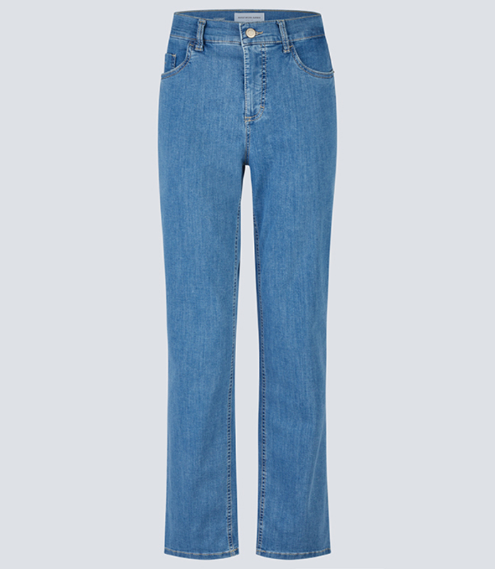 Die bequeme Damen Jeans Dina 5604 von Anna Montana präsentiert sich in der beliebten Frühjahrsfarbe Summer-Stone, einem helleren Blau in ansprechender Farbhöhe. Der weiche Denim Bern hat einen hohen Baumwollanteil, ist leicht elastisch und hat eine mittelschwere Qualität, sodass die Jeans fast das ganze Jahr getragen werden kann.