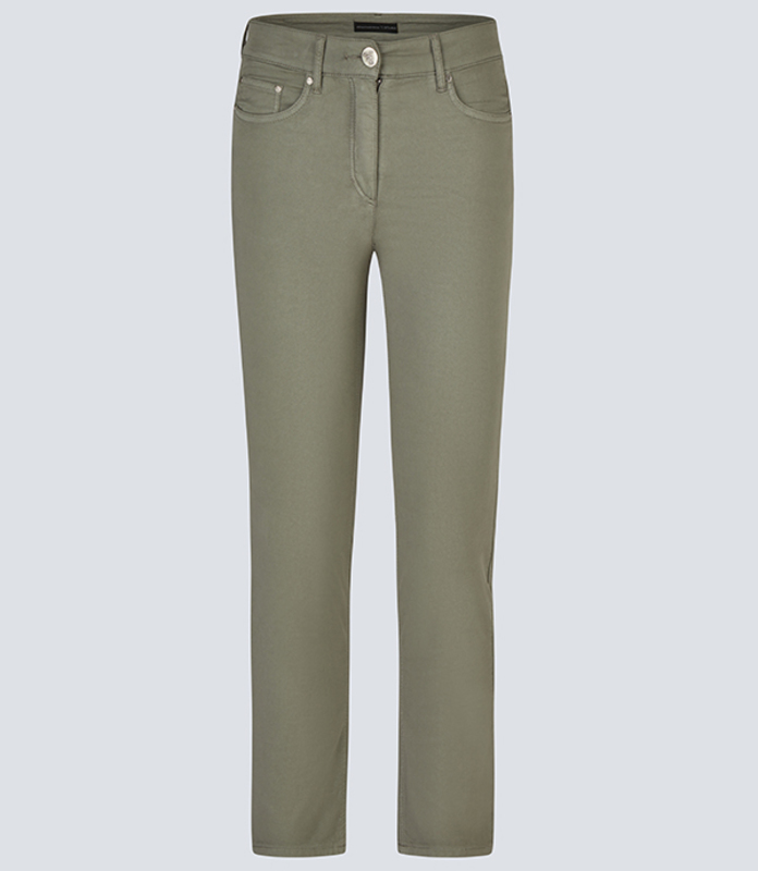 Diese bequeme Damen-Baumwollhose Cora 4464 punktet in dem saisonalen Frühjahrston Khaki, einem ansprechenden Grün in mittlerer Farbhöhe. Das besonders leichte Baumwollgewebe sorgt für ein exzellentes Tragegefühl und ist ideal auf warme Tage abgestimmt, sodass Sie höchsten Komfort genießen können.