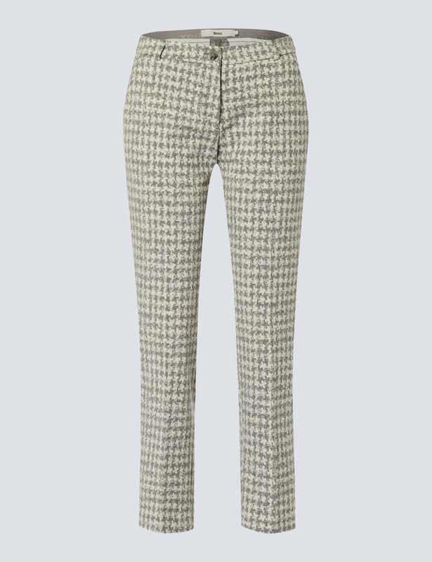 Diese stilvolle 7/8 Damenhose Maron 77-5148 ist in einer klassischen Musterung im Hahnentritt gestaltet, bei dem sich die Töne Silber und Natur harmonisch ergänzen. Gefertigt wurde die Hose aus einem wärmeren Jerseygewebe, das einen hohen Tragekomfort bietet und optimal sportlich schicke Looks unterstützt.