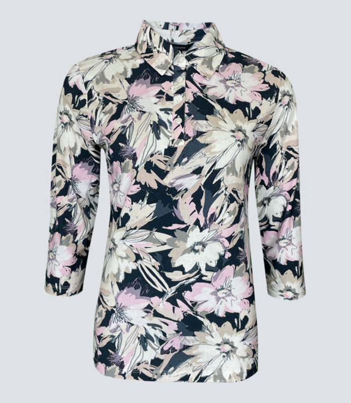 Dieses hübsche Damen Polo-Shirt 48269 zeigt sich in einer floralen Musterung in Rosé und Marine. Gefertigt wurde das Shirt aus einem weichen Baumwoll-Modalmix, der einen hohen Tragekomfort bietet und angenehm auf der Haut liegt.