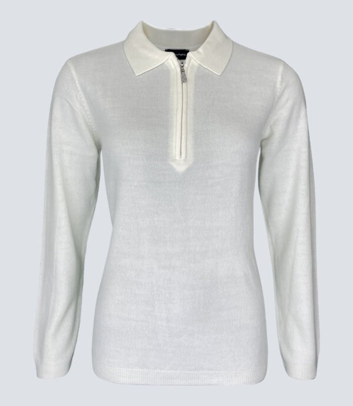 Damen Pullover Polo-Kragen18317 Natur