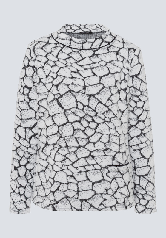 Dieser flauschige Damen Stehbundpullover 308.004 ist in einer harmonischen Musterung designt, wobei die Hauptfarbe Natur ist. Das verwendete Material ist ein flauschiger Materialmix. Dieser garantiert einen hohen Tragekomfort und wirkt besonders bequem und elastisch.