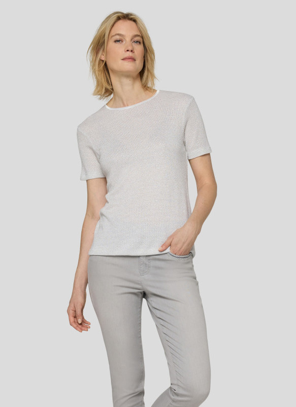 Mit diesem ansprechenden Damen Pullover 56-117319 bringt Rabe einen besonders leichten Pullover mit Halbarm, zu dem es auch eine passende Jacke gibt. Das helle Grau schimmert dank des metallisierten Garns dezent und besonders edel. Das verwendete Material ist ein Viskosegewebe, das besonders leicht und luftig gestrickt wurde, wodurch der Pullover besonders vielseitig sowie komfortabel im Tragegefühl wird.
