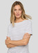 Das T-Shirt von Rabe ist in einer normalen Passform umgesetzt und mit einem Halbarm ausgestattet. Die ansprechende Strukturierung macht das T-Shirt zu einem besonderen Teil, wohingegen die feminine Streifenoptik einen sportiven Look unterstützt.