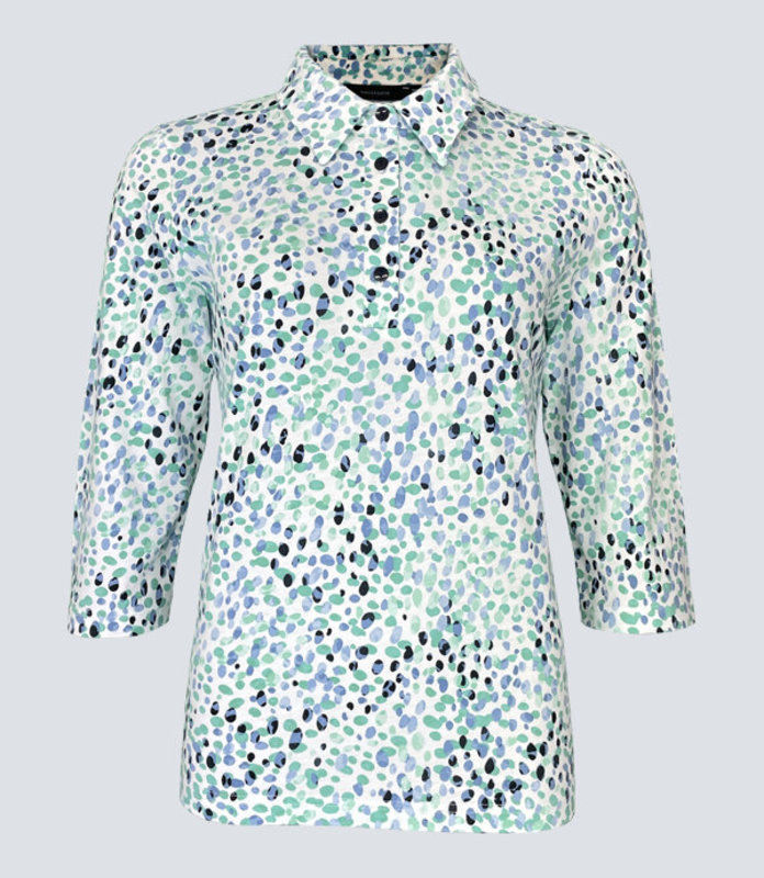 Das Damen Polo-Shirt aus der Mode von Navigazione hat eine normale Passform und einen Dreiviertelarm. Die Knopfleiste mit klassischem Kragen kann offen oder geschlossen getragen werden, ganz nach Ihrem persönlichen Wohlbefinden. Das harmonische Tupfenmuster bringt frische Farbe in den Alltag und sorgt für eine freundliche Ausstrahlung.