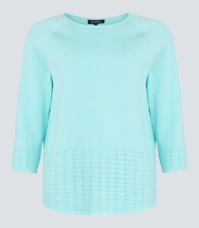 In einem zarten Eisblau überzeugt der Damen Pullover 6935 von Sunday in einer raffinierten Optik. Die auffällige und offen gehaltene Struktur an den Ärmeln und im unteren Teil des Pullovers ist sein charakteristisches Element. Hergestellt aus einem feingestrickten Viskosemix, trägt der Pullover nicht auf und kann perfekt mit anderen Oberteilen kombiniert werden. Die leichte Qualität ist optimal auf das Frühjahr abgestimmt und hat durch das glatte Garn eine etwas kühlere Haptik.