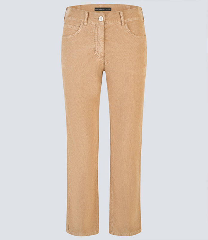 Die bequeme Damencordhose Greta 4238 überzeugt in dem hübschen Farbton Hellbraun, der eine beliebte Herbstfarbe für eine Cordhose ist. Gefertigt aus einem besonders festen Cordgewebe, bietet diese Cordhose wärmende Eigenschaften und einen authentischen Look. Die wärmende Qualität ist optimal auf die kältere Jahreszeit abgestimmt.