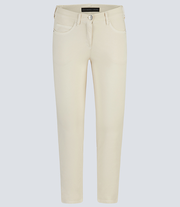 Diese hübsche Damen-Baumwollhose Greta 4464 zeigt sich in dem saisonalen Frühjahrston Leinen, einem hellen Beige mit frischem Ausdruck. Das besonders leichte Baumwollgewebe sorgt für ein exzellentes Tragegefühl und ist ideal auf warme Tage abgestimmt, sodass Sie höchsten Komfort genießen können.