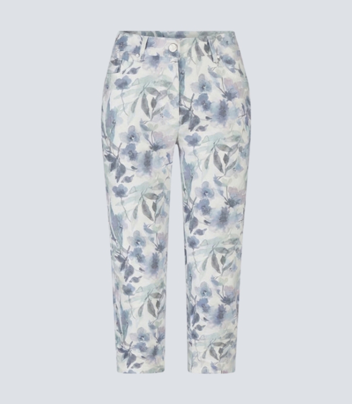 Die ausgefallene Damen Caprijeans Greta 4356 überzeugt in einer frischen Allover-Musterung im Blumenprint. Gefertigt wurde sie aus einem bequemen und leichten Stretch-Denim. Die Caprijeans bietet ein hervorragendes Tragegefühl. Die leichte Qualität ermöglicht einen optimalen Tragekomfort in der warmen Jahreszeit.