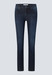 Diese Damen Jeans Skinny 120028 ist in Dark-Indigo [Dunkelblau] gehalten, die durch Aufhellung in einer dezenten Used-Optik umgesetzt wurde. Das eingesetzte Material ist ein bequemer, sportiver und mittelschwerer Denim. Auf den Taschen vorne sind moderne Sitzfalten eingebettet.