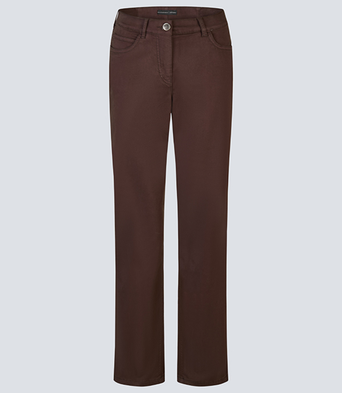 Die bequeme Damen Baumwollhose Greta 4342 überzeugt in dem beliebten Herbstton Dunkelbraun, eine tolle Alternative um mit den schönen Herbsttönen der Saison vielseitig zu kombinieren. Gefertigt aus einem besonders weichen Baumwollgewebe, bietet diese Baumwollhose ein hervorragendes Tragegefühl. Die mittelschwere Qualität ermöglicht eine lange Freude im Jahr beim Tragen.